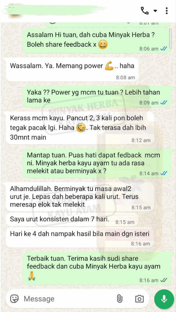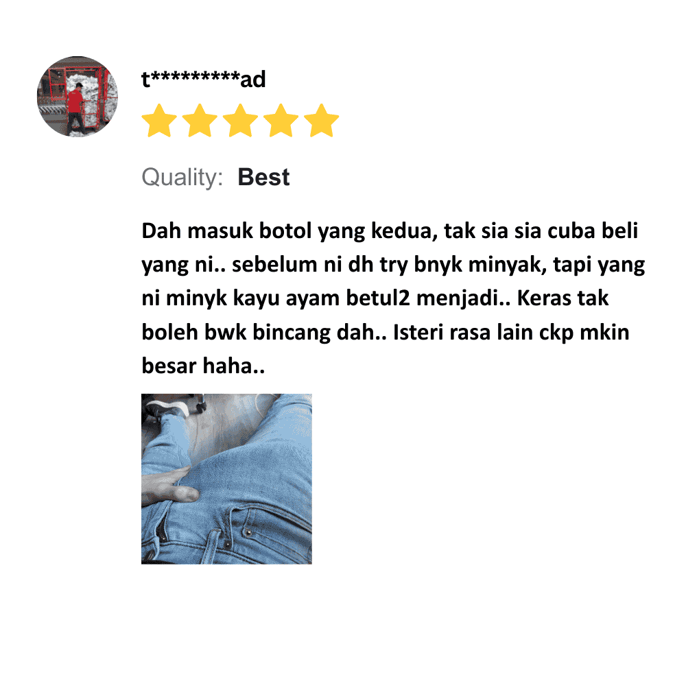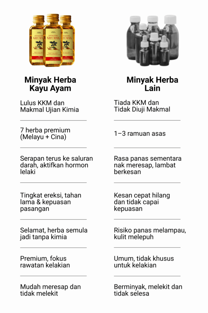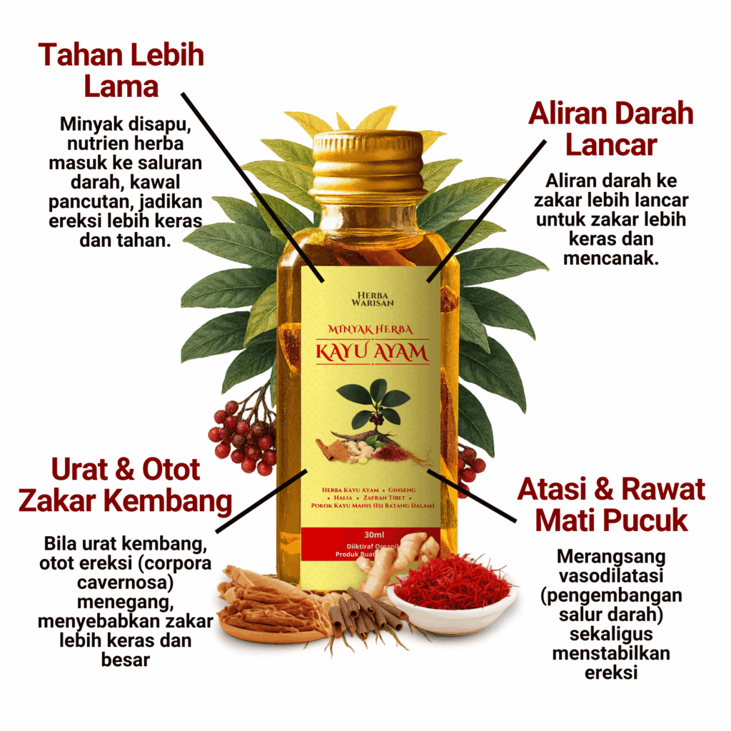 Minyak Herba Kayu Ayam Terbukti Bantu Kekal Keras Lebih Lama Secara Semula Jadi, Prestasi Lebih Mantap dan Kepuasan Rumah Tangga Lebih Harmoni.