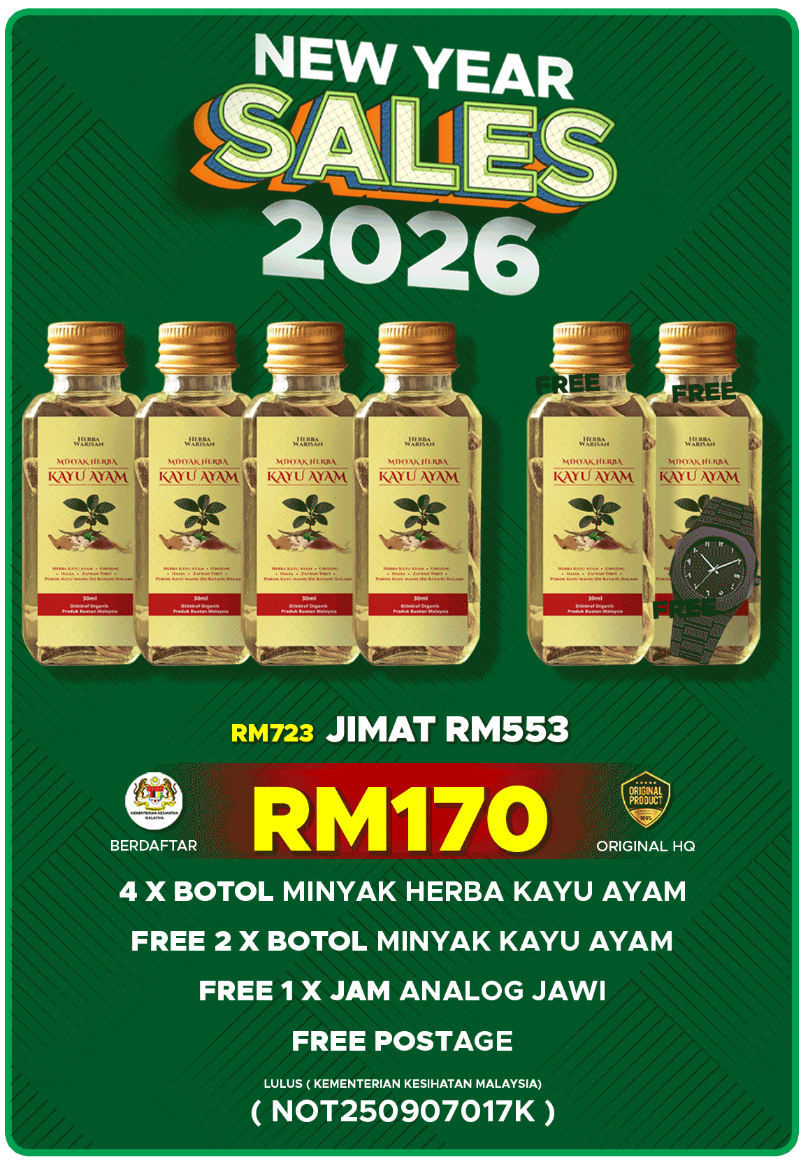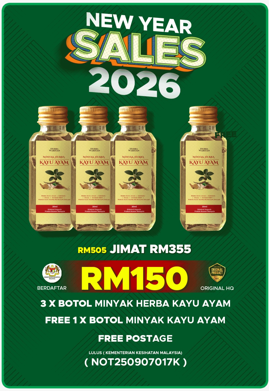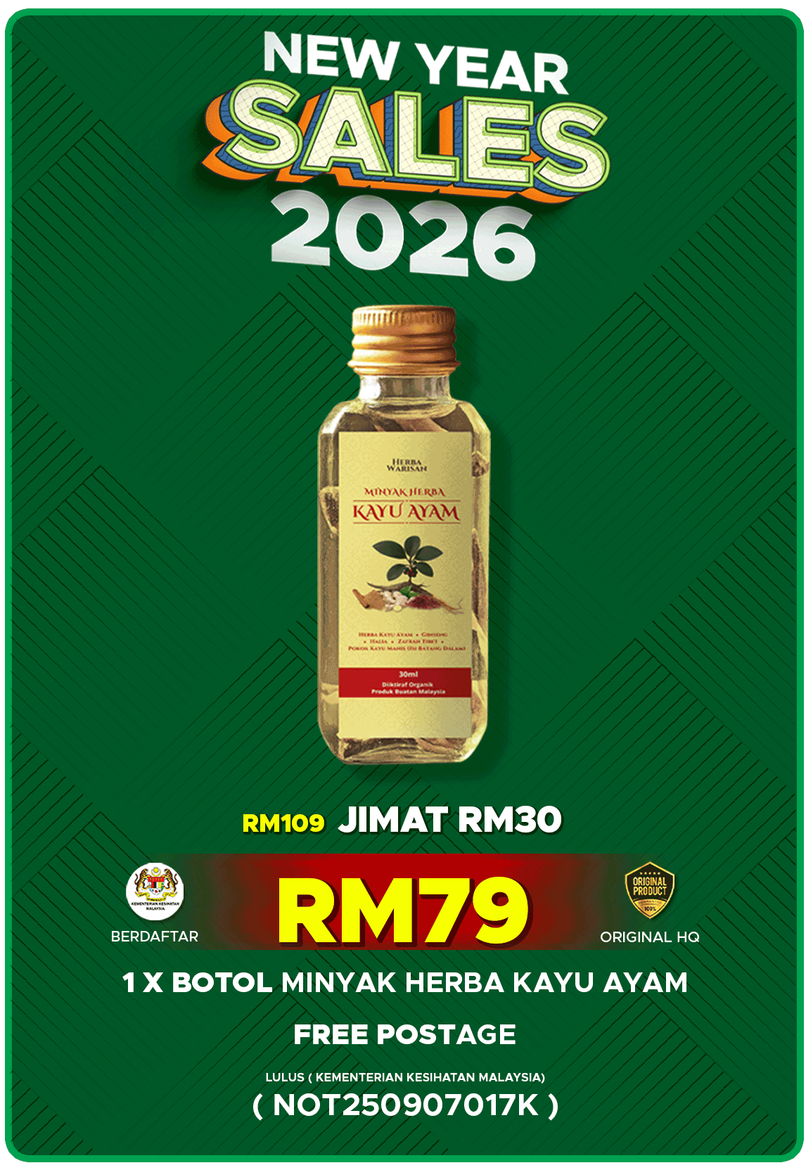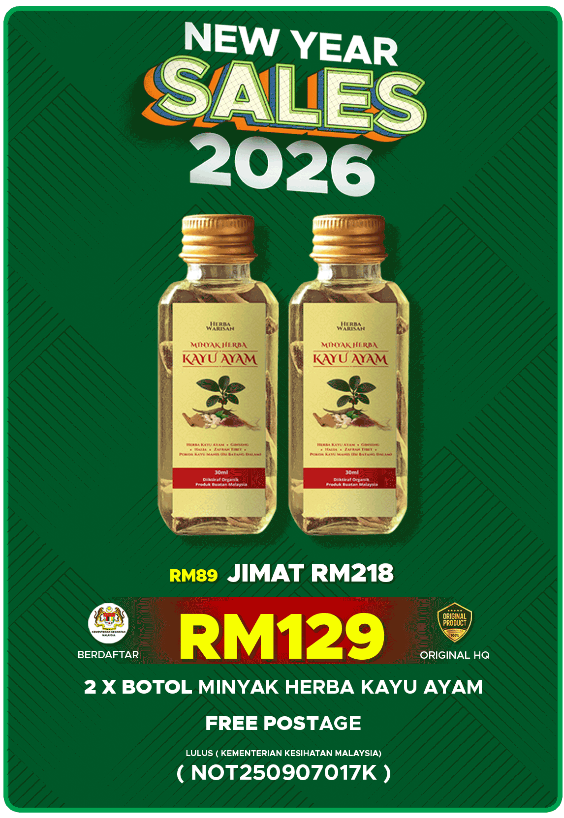 👉 Ya, diformulasikan daripada herba semula jadi tanpa bahan kimia berbahaya. Tiada kesan sampingan jika digunakan mengikut cara yang betul.